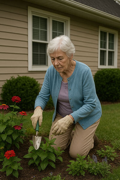 Scenario: The patient is Geri Montana, a 67-year-old female who lives alone and is typically active in her neighborhood. She can usually be seen outside tending her garden or on her daily walks. Her next door neighbors noticed she hadn't been outside for several days and wasn't answering her phone or door. Concerned, they contacted 911 to request a welfare check. The scene starts as Law Enforcement arrives to check on Geri.
